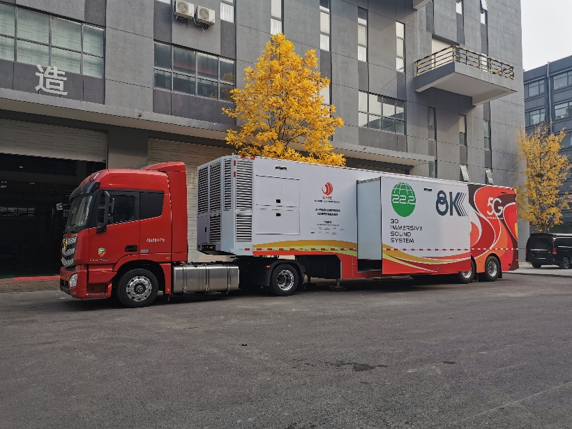 8K转播车配套使用的22.2音频车,选用超低底盘,来满足22.2的建声高度要求。箱体中部采用双侧拉箱结构,来满足22.2的建声宽度要求。